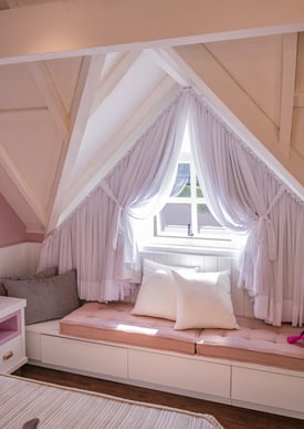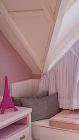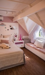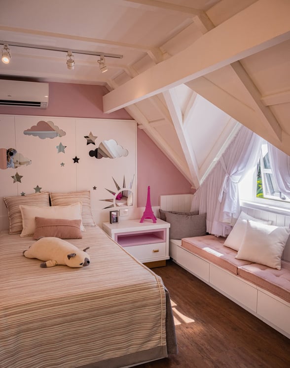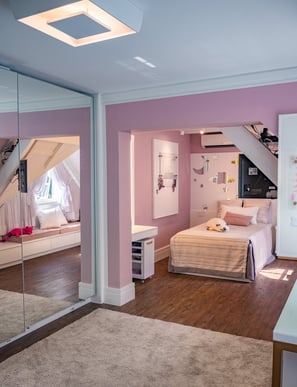 Após anos usufruindo seu quarto infantil, a agora adolescente sentiu a necessidade de um quarto que refletisse sua nova fase, mais armários, uma mesa de estudos e penteadeira foram pedidos dela, além de tons rosas e dourados. A cama, o painel e a mesa de cabeceira foram renovados e reorganizados no novo layout do quarto.